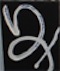 Anti-Calligraphy is one of several series exploring the nature of the sign and its continuity with the icon on one hand and the purely gestural on the other. Although they are deeply grounded in my long studies of East Asian art and calligraphy, these works comprise the antithesis of East Asian calligraphy in several respects: in the use of viscous acrylic paint whose friction is recorded in the final image (as opposed to the traditional sumi or "India ink" that flows through the brush easily); in the placement of white on black (a reversal of the traditional black on white); in the creation of a gessoed and painted surface that resists the brush; and finally in the insistence on pure image without reference to meaning. The "Hiragana" series centers a single "letter" from the Japanese hiragana syllabary in otherwise empty space. The "Smudge" series is pure gesture, without ideographic or phonemic content of any kind.